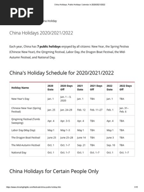 China Holidays Public Holidays Calendar In 2020 2021 2022