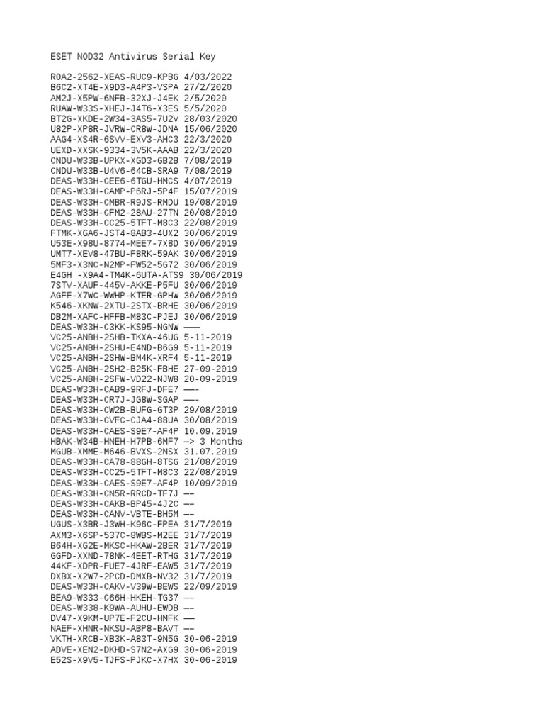 368674915 Eset Nod32 Antivirus Keys Valid 2020 Txt Areas Of