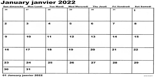 January 2022 Canada Calendar With Holidays For Printing Image Format