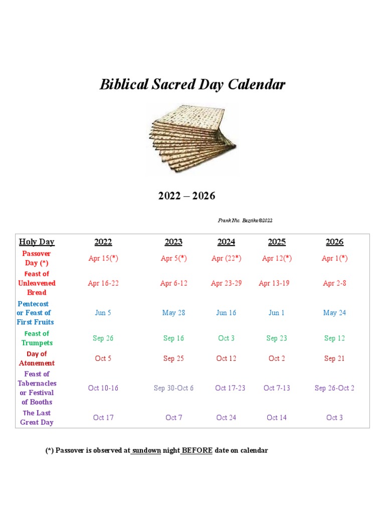 Biblical Holy Days Calendar 2018 2022 Passover Religious Holidays